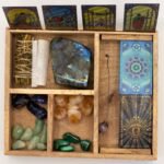 Inside, the structured four‑section layout offers generous compartment space, perfectly suited for storing multiple tarot or oracle decks, larger crystal collections, pendulums, or other ritual essentials. The thoughtful design ensures each item has its place, helping you maintain a clear, uncluttered reading environment.
