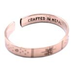 Discover the beauty of wearable inspiration with our handcrafted Inspiration Bracelets, made in Nepal — the land known as the roof of the world. Each bracelet is a small work of art, crafted from finest copper, and designed to uplift, empower, and connect.